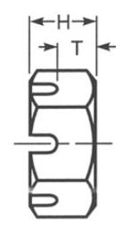 | Castle type nuts manufactured to MIL Specification MS21025 using 4140 steel. Mild steel nuts are not acceptable for use on certificated aircraft. 1-1/4" dia. nuts for 500 x 5 axles, 1-1/2" dia. nuts for 600 x 6 axles. |