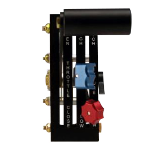These quadrants are made from aircraft quality anodized aluminum for long life and corrosion resistance. Brass friction plates are adjustable to fit individual preferences. Black anodized top plates are machined and engraved on a CNC mill to exacting tolerances for an excellent finish. side plates are laser cut insuring a perfect fit and feel. All hardware used meets AN standards. Note: All throttle qaudrants require a AN665-21R clevis with an AN393-11 clevis pin. The side mount style quadrants are intended for use in tandem airplanes such as the RV4, RV8, Stardusters, Baby Great Lakes, One Design, Acro Sport and Sonerai. The center mount style is intended for use in side-by-side aircraft such as RV's, Sonex, Thorp T18 and Pulsars. MODEL SPECIFICATIONS: