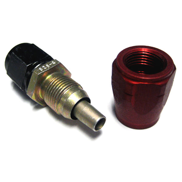 Used with Aeroquip 601 Hose, Aeroquip 816 (Straight fittings) and 8891 (90º right angle angle hose fittings) consist of a pre-assembled nut/nipple assembly and an internally threaded hose socket. The size 4 fitting has a cadmium plated steel nut and nipple. Sizes 6, 8 and 10 nuts and nipples, and all sizes of sockets, are anodized aluminum. Note: Aeroquip 816 fittings are not the same as AN816 fittings. Include the word Aeroquip with Part number when ordering. |