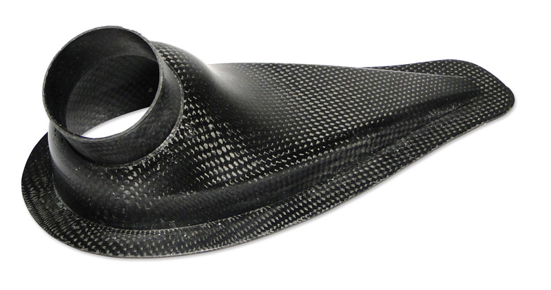 Bonehead Composites created this air scoop to allow the hose to be run off the scoop at various angles. Made out of compressed molded carbon fiber and accepts a 1-3/4" hose, the scoop dimensions are 7.5" x 3-1/8", with a 9/16” flat flange for mounting. Included is a cutout template giving you the ability to place the cut in your desired location.