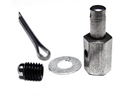 This universal NAP assembly will eliminate bent or smashed push-pull cable ends and get a strong hold at the same time. The cable end lays in a machined channel at the bottom of the screw hole. Tightening the compression screw snugs down on the cable end thus eliminating any potential crimping or smashing of the cable. Eliminates wear, possible cable breakage and enhances smooth push-pull operation. Complete with washers and cotter pin. All stainless steel, computer machined and easy to install. |