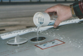 The incredible new GATS Jar allows a pilot to pour the fuel used in the preflight check back into the fuel tank without fear of water contamination. The jar uses a special separator screen that, when coated with avgas, forms a barrier to water and debris, yet allows passage of avgas. The GATS Jar also detects jet fuel in the event of inadvertent fueling of your aircraft with jet fuel. By using the GATS Jar, pilots can help protect the environment by pouring sample fuel back into the tank instead of on the ground. |
