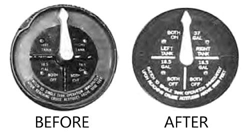 This new fuel selector plate is billet machined and anodized, with the text engraved on the plate. It is an efficient one piece design which is easy to install & factory guaranteed. FAA-PMA approved. For Cessna 182 with 55 gallon tank. |