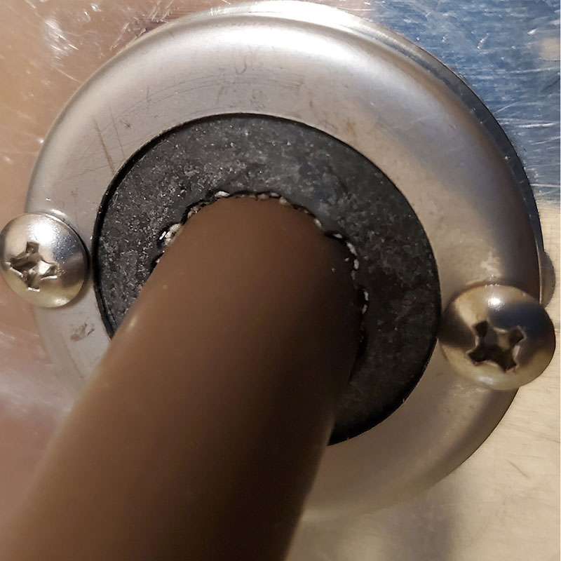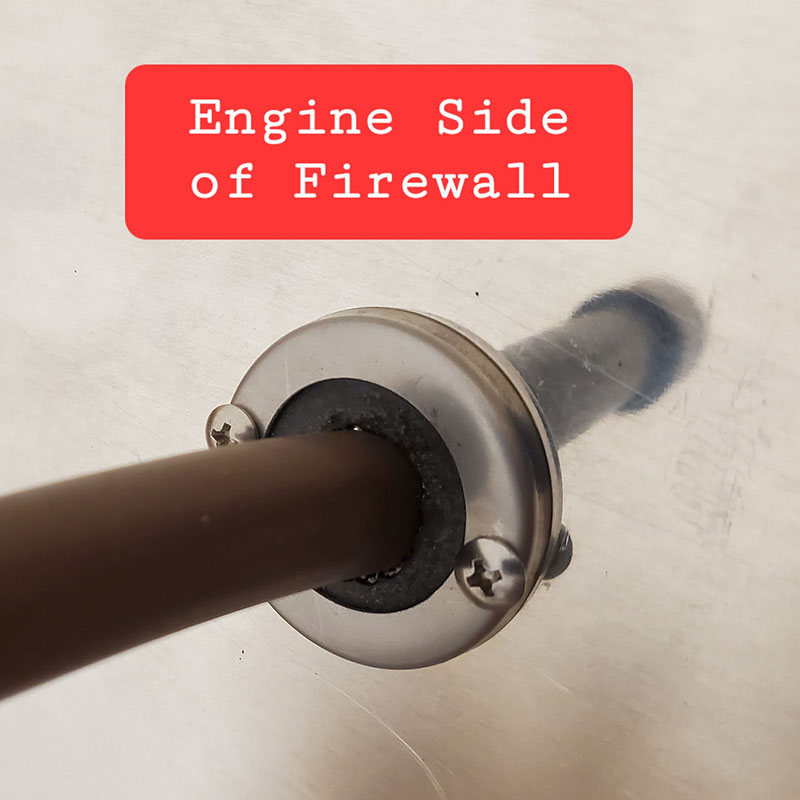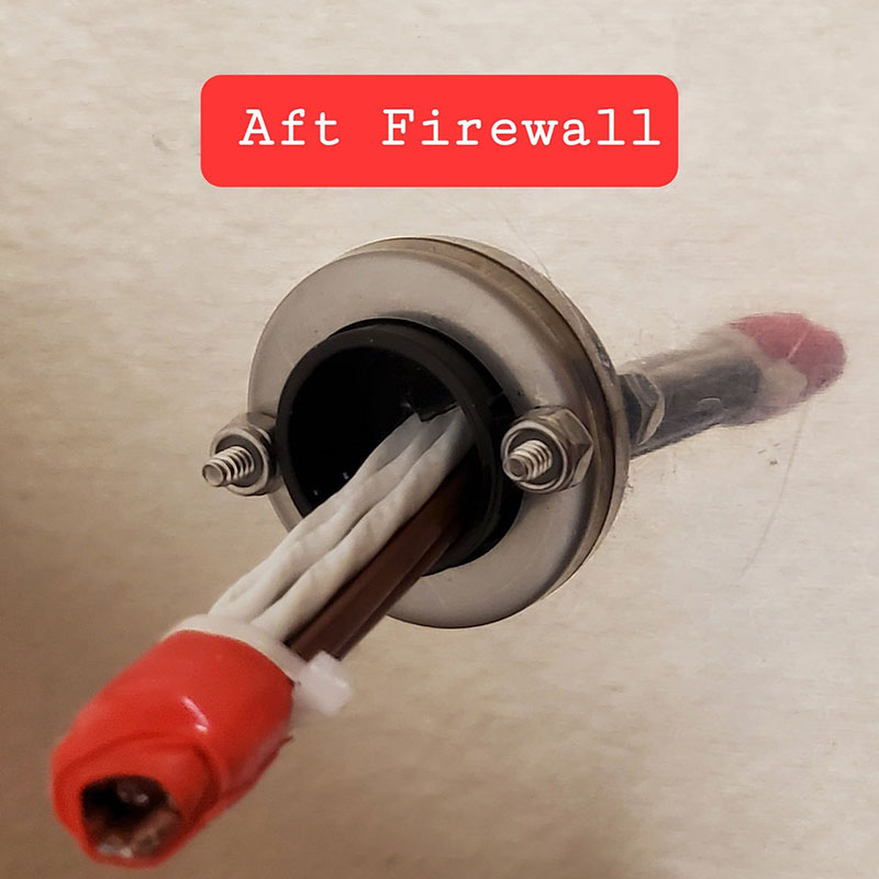This firewall pass-through method has been proven over years of aircraft builds. Each aircraft typically requires three to four kits, depending on the number and type of components routed through the firewall. Drill a 1-inch hole in the firewall and add two clearance holes for 6-32 screws. This configuration allows items up to 0.875 inches in diameter to pass through. For installation, you can either make an X-cut in the baffling material or, for components such as a tachometer cable, punch a hole in the baffling, make a single slit to that hole, and split the plastic bushing on one side. For added protection, apply high-heat silicone sealant to the backside.