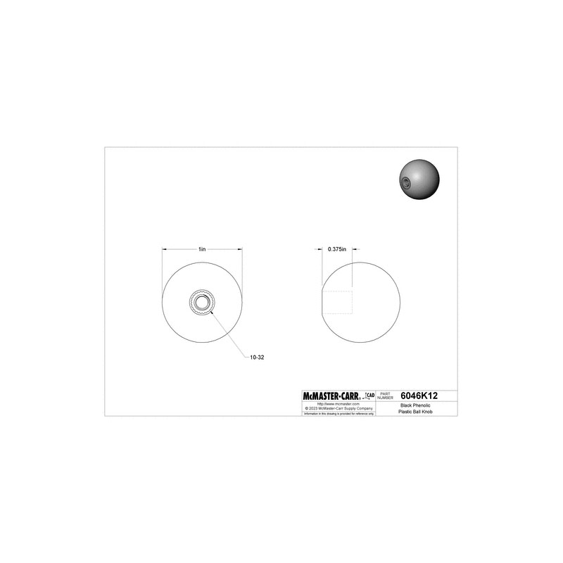 Install these traditional, easy-to-grip ball knobs on a threaded stud. They're good for control levers and push-pull rods. Plastic knobs are a lightweight alternative to metal. They resist oil, grease, and solvents. Phenolic has good scratch resistance. |