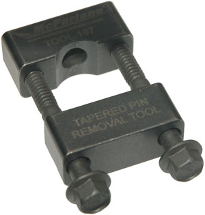 U-Joint Taper Pin Removal Tool for Piper Control YokeAn affordable tool to quickly remove stuck taper pins Piper AD2010-15-10 requires inspection of the connection between the control yoke universal joint and the shaft on the forward (engine) end of the joint. Removing the taper pin that holds the shaft and u-joint together can be very difficult due to the limited space behind the panel. To make matters worse, there isn't anything solid to hammer against, and using a hammer may damage the control yoke structure or delicate avionics. The McFarlane taper pin removal tool makes this job easy and safe even with the most stubborn taper pins. Simply position the tool on the u-joint and tighten the bolts until the pin breaks free.