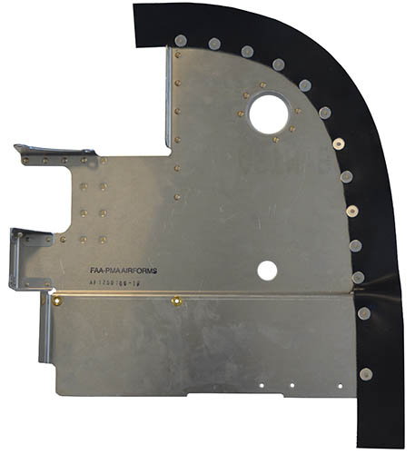 The AF1250100-18 is a common Cessna 200 series right hand rear baffle. In standard configuration the baffle has a hose flange riveted to the back to which scat hose is connected, and air is directed to another component (typically magnetos or something else that runs hot). In some applications this scat hose is not needed, and so there is a cover plate (CP) riveted on in place of the hose flange to seal the hole that is punched there by the turret punch. CP part numbers include the cover plate. Airforms Engine BafflesKeep your engine cool with new baffles! Airforms is the premier manufacturer of FAA-PMA replacement baffles