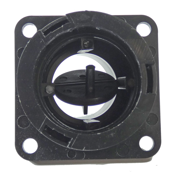 These ball and socket air vents are injection molded T grade ABS. The vent orifice is 1" diameter, and the ball swivels 45°. The mounting flange is 2-1/8" square, and the distance between mounting hold centers is 1- 11/16". Mounts in 1.75" diameter hole & uses 1-3/4" ducting. |