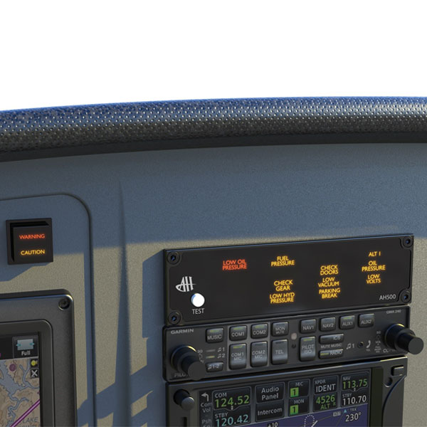 The optional AH501 Master/Caution attention-getter / acknowledgement switch helps to draw the pilot’s attention to an anomaly, its switch turns unacknowledged captions to steady and mutes the audio.