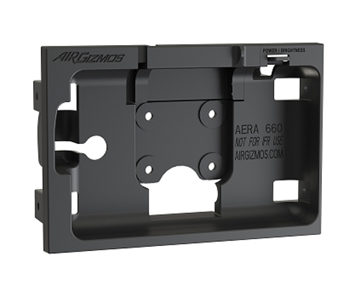 Garmin has built another popular GPS and we have a Panel Dock for it. When you snap your aera 660 GPS into the Panel Dock, you will immediately appreciate the glove-like fit. The Panel Dock conforms to every curve of the new aera 660. The Panel Dock also matches the look and feel of the rest of your avionics stack, giving you a pleasant, professional looking panel. The new Aera 660 Panel Dock maximizes your use of the aera 660 by placing it right in your panel. Your GPS is held securely in place, and as a result, the touchscreen controls feel comfortable and stable. Once in flight, you will appreciate the safety of having your portable GPS out of the way of your controls. The GPS won't be blocking your other instruments. Your GPS finally has a home in your cockpit. Touch screen controls are easier to navigate when the device is held securely in the panel, and you will enjoy the professional and clean installation. Although the Panel Dock holds the aera 660 securely, you will appreciate the ability to quickly remove the GPS from the aircraft. You are free to use the GPS in another vehicle. You will also enjoy flight planning outside of the aircraft. Cable management is always a concern with portable devices. Garmin has reduced the number of connectors on this device by using a docking connector. This docking connector nests into the back of the Panel Dock. We have integrated Garmin's docking connector into the design. Just click the Aera 660 into place and you are ready to go. Garmin uses the power button to allow you to adjust lighting levels as well as other features of the GPS, so we have molded in an actuator for the power button. This allows easy access of the power button with the GPS held securely in the panel. The aera 660 Panel Dock fits a standard radio stack. If you are upgrading from an older Garmin GPS, you will be happy to know that we have designed the aera 660 Panel Dock to fit the same opening as the 196,296,396,496 Panel Dock, and uses the same hole layout for mounting. As with all of the Panel Dock™ products, the aera 660 Panel Dock is manufactured with high quality PC/ABS for long life. |