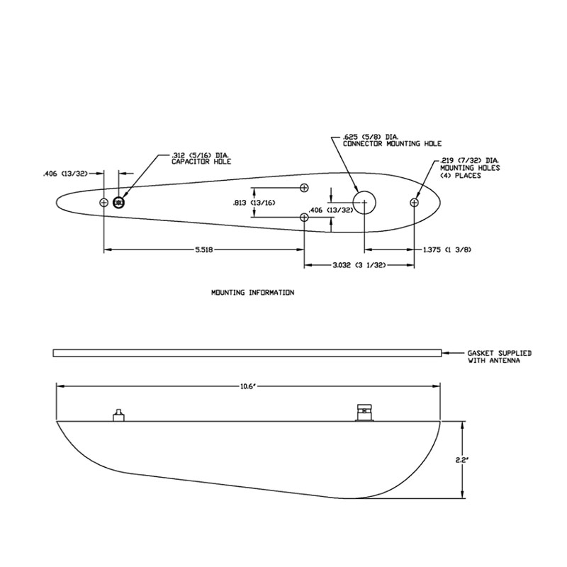 The AV-64 is a boat type marker beacon antenna designed for very low drag. It is constructed of an acrylonitrite-styrene-acrylic (ASA) shell with the internal parts encapsulated in rigid urethane foam for mechanical and electrical stability. The white color allows for maximum performance without losses due to color pigments or unseen dirt. The antenna is supplied with cellular neoprene mounting pad and hardware. The antenna is designed to operate at speeds up to 350 mph and altitudes up to 50,000 ft. It has a drag force of 0.22 lbs @ 250 mph. This antenna is a direct replacement for Comant's model CI-102. Download the product outline in PDF format. |