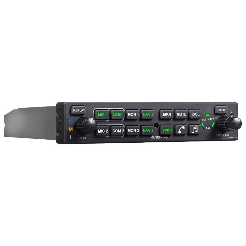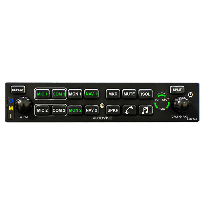 Audio management shouldn’t be difficult and you shouldn’t struggle to understand what you’re hearing. With Avidyne’s AMX240 full-featured audio source selector panel you’ll get outstanding features and sound quality wrapped up in Avidyne’s legendary “Flying Made Simple” user interface. Avidyne’s AMX240 Audio Panel provides the latest features in audio management for general aviation aircraft in a simple, easy-to-use design that includes a full-featured audio source selector panel, intercom, and marker beacon receiver. You love the outstanding sound quality and large, easy-to-read, LED backlit buttons – providing simple mode selection and at-a-glance annunciation of your current audio and intercom configuration. |