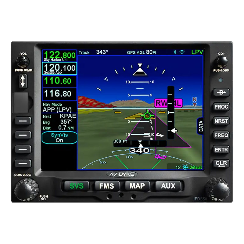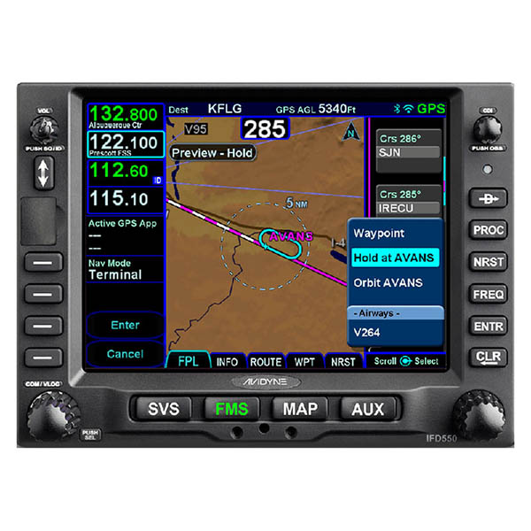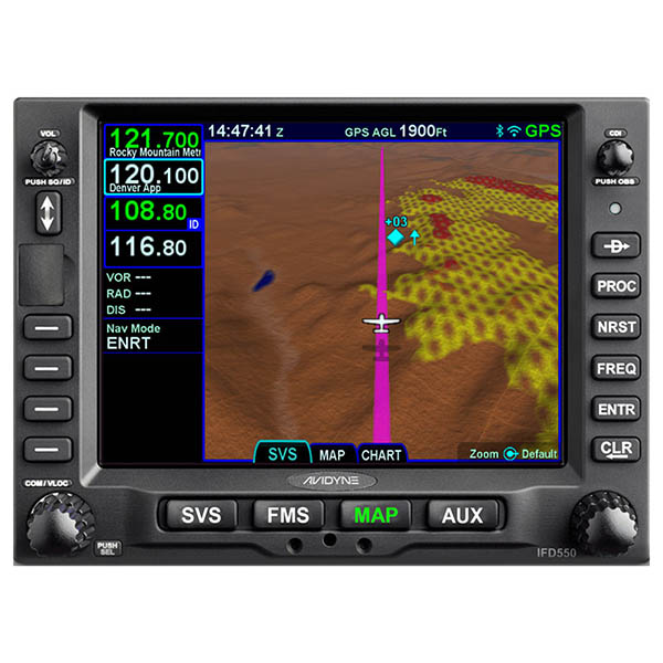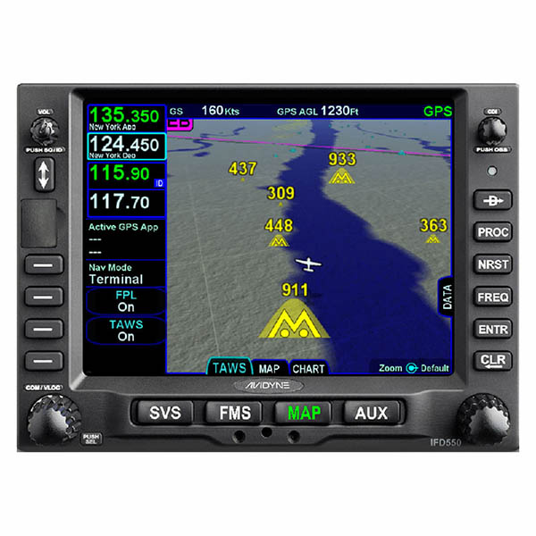 The IFD550 is Avidyne’s Premium panel-mounted FMS solution. The IFD550 has all the features and power of the IFD540 with the added benefit of 3-dimensional “ego-centric/ out-the window” Synthetic Vision views. Thanks to its integrated Attitude Reference System (ARS) and Dynamic SVS, you can “see” all your flight information laid out in front of you, giving you unprecedented situational awareness. Synthetic Vision shows terrain in 3D with hazard alerting, obstacles, and traffic. Everything you need to see on a bright, easy-to-view 5.7” touchscreen. As with all of Avidyne's IFDs, the IFD550 includes many great features that make operation much easier including FMS Preview, which lets you easily create, upload and review your flight plans visually with changes shown on the screen before selection. And with Avidyne's patented GeoFill™, in-flight changes are a snap because the IFD550 predicts your next entry based on your location, not the sequence in the database. |