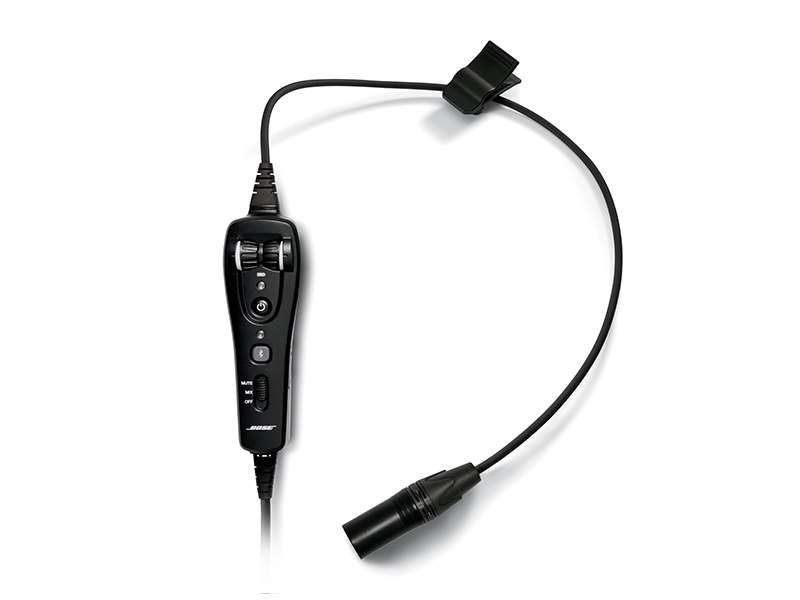 This flex-powered straight cable features an electret microphone with a Bluetooth audio and communications interface. When aircraft power is detected, the headset automatically turns on and switches from battery power to aircraft power. |