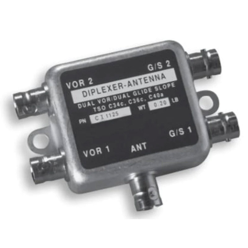 Comant 2 through hole diplexer with BNC ports. Splits a single VOR/LOC and GS antenna signal into two VOR/LOC and two GS signal output. Designed for avionics units that require separate NAV signal inputs. Suitable for internal aircraft mounting |