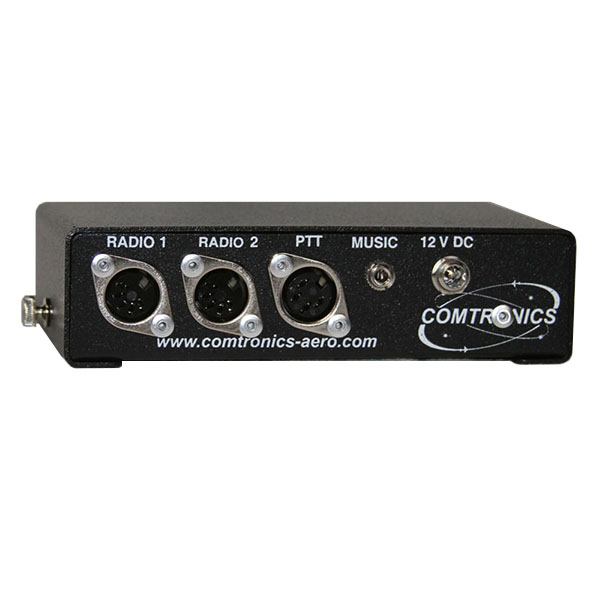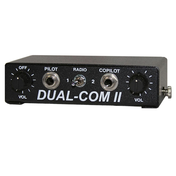 • The DUAL-COM II Intercom is a portable two-place unit designed for two-place aircraft and developed for high noise environments. This intercom has two separate volume controls which can be adjusted by either the pilot or passenger to meet individual hearing levels and integrates directly with all Comtronics headsets and helmets providing ar-to-air and air-to-ground communication.