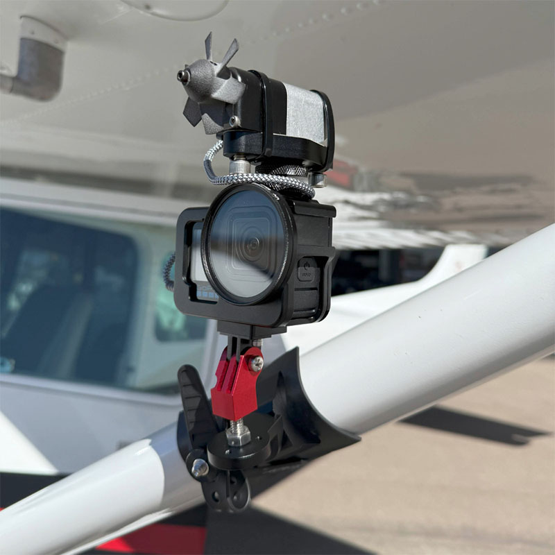 Never worry about dead camera batteries in flight again. The Airfoil Generator uses wind power to maintain camera batteries in flight. No need to modify existing systems as the generator connects only to the camera. |