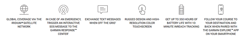 | Battery life | Up to 350 hours with 10-minute inReach tracking |
