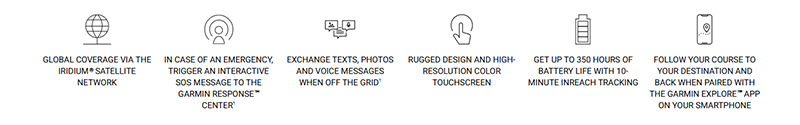 | Battery life | Up to 350 hours with 10-minute inReach tracking Up to 95 hours in performance messaging mode |