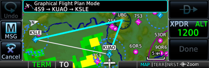 Yes, ForeFlight works with the GNX 375 in the current iterations. (They did not always work together.) You can flight plan on ForeFlight (or Garmin’s Pilot app) and transfer the flight plan to the GNX 375 via Bluetooth once in the cockpit. While in flight, it’s possible to send flight plans from the GNX 375 to the ForeFlight app, as well as to send amended flight plans from ForeFlight back to the GNX 375.