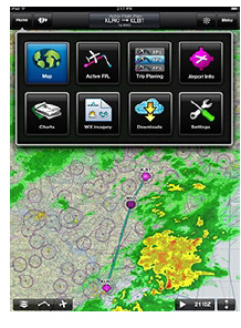 • View comprehensive aviation weather, including NEXRAD radar, visible and infrared cloud imagery, METARs, TAFs, AIRMETs, SIGMETs,