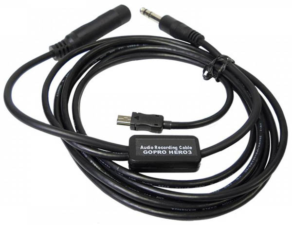 This HERO3/HERO3+/HERO4 audio cable will directly interface your GoPro HERO3 , HERO3+ or HERO4 series cameras to your audio system with no fuss! Great for creating custom flight videos without excess cabin noise. Includes the INTEGRATED proprietary Hero3/Hero4 cable connector - No secondary cable Adapter is required. This HERO3 and HERO4 cable is made from quality molded plastic and molded connectors, utilizes a straight cord, allowing the cable to tuck easily into edges and out of camera view. This also prevents accidental entanglement with the cord while flying. Cable is 5.5 ft long giving you ample length to place your camera in many areas |