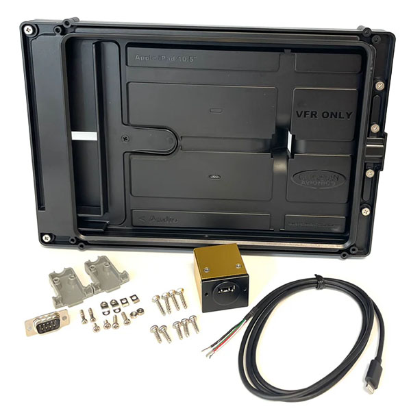 The smartPanel Mount for Apple iPad Pro 10.5-in is a flush mounting system to easily dock and seamlessly integrate your existing iPad into your aircraft instrument panel -- giving it a clean, professional appearance in an easy to view position! Once installed, the smartPanel mount allows your iPad to be docked in seconds, fully connected to power and audio with built-in cable ports. Removal is just as easy -- just slide, push, and remove! The iPad Pro 10.5-in model is becoming very popular in aviation with ample screen size for viewing and a bright Retina display for superior visibility in even the brightest of cockpits. The smartPanel Mount for iPad Pro 10.5-in brings that functionality and performance within easy reach and sight, beautifully transforming your new or existing panel. Power supplies may be installed as a minor alteration. Please refer to the document link for the Guardian Avionics NORSEE Letter of Authorization. Designed with General Aviation in mind. The smartPanel Mount for iPad Pro 10.5-in was designed by aerospace engineers to perform in the unique environment of the cockpit. The spring actuated mounting cradle securely holds the iPad in place during the roughest of turbulence. The clean, flush mount has a shallow chassis allowing it to be easily installed in even the smallest of instrument panels. Built-in ports for the Apple Lightning plug and a 3.5mm audio cable help keep cables safely and securely positioned behind the panel, allowing you the ability to connect to power, data, and audio without the cord mess. Keep it cool. As they are being used, iPads generate heat that can affect performance -- resulting in a high-temperature shut down when you might need it most! Pilots have found this out the hard way when using a temporary mounting solution like Velcro to attach their unit to the instrument panel. The smartPanel Mount was designed with cooling in mind. Each mount has a built-in Fan Blower (14 or 28V) capable of supplying 4.6 Cubic feet per minute of Air and because it is powered by the aircraft you will not run out of battery. Each panel mounting tray features cooling channels to circulate Fan Blower air behind your iPad to keep it cool even under the heaviest of use. Simple Installation. The smartPanel Mount is designed for easy installation in your panel. Each durable molded ABS plastic unit is self-contained and mounts with only four screws. The installation drawings give you the exact panel cutout details and screw positions in either PDF or AutoCAD DXF for precise cuts. Mount in Automobiles, Boats, RVs, and Displays Too! Though the smartPanel Mount for iPad Pro was designed for use in aircraft, the durable construction and well-designed flush mount can be used easily for a wide variety of applications -- wherever there is a flat surface! |