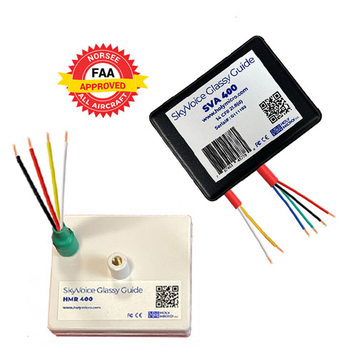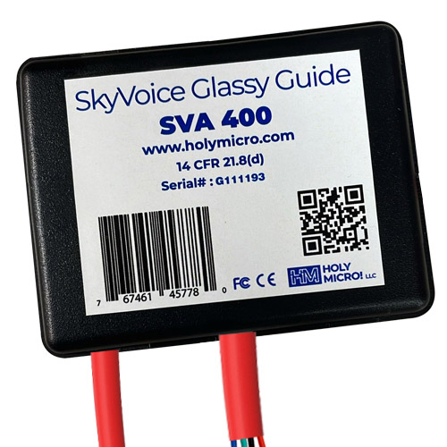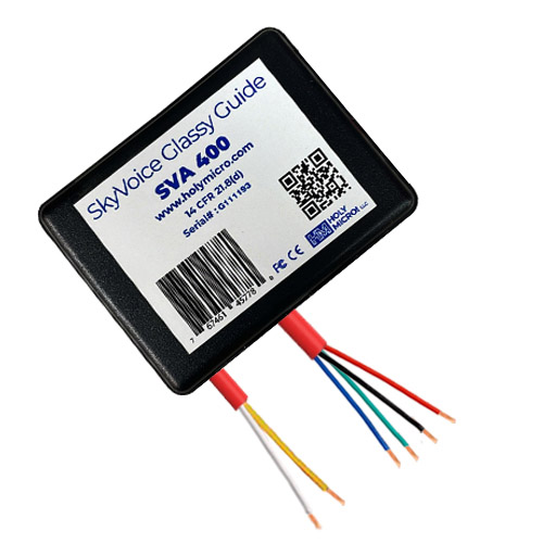 The SkyVoice glassy guide 400 (includes SVA 400 unit and HMR 400 unit) from Holy Micro! LLC, is a 400 ft take-off and landing height announcer, accurate over water and land. |