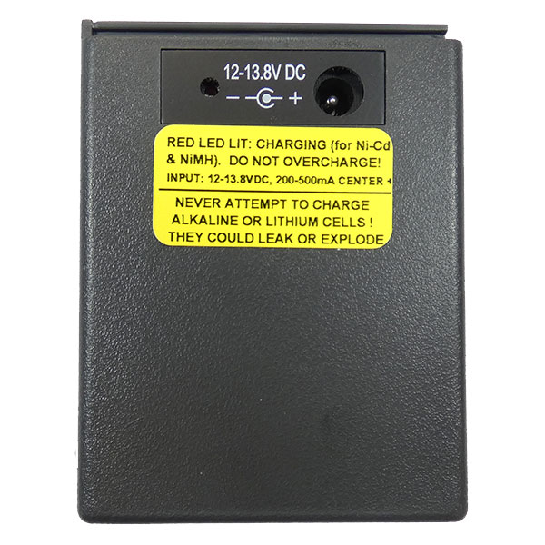 I noticed that when I keyed up the mic to transmit the Battery warning would come on meaning low voltage. Even with freshly charged batteries a couple of uses and the warning would come on. I assumed that I had a bad cell(s) or they werent fully charged, but the cells checked out perfect for NiMH batteries. Taking apart the factory Icom battery pack and it was obvious. The original factory battery holds 10 NiMH cells whereas this one only holds 8. The reason for the low voltage warning. Eight of 1.5v standard alkaline batteries will supply enough voltage to satisfy the low voltage warning. Dont know how long they will last and definitely DO NOT try and charge them!