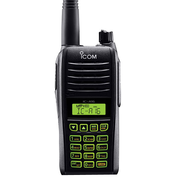 The A16 and the A16B are built tough and rugged like all Icom radios. It is the smallest radio with the loudest audio on the market, featuring 1500 mW of powerful clear audio. Packed with 6 watts of power for longer range, the A16 is also waterproof to IP67 standards. The A16 is the ideal flight companion for the student pilot, for ground crew with one hand operation on the flight line, or as a back up in your ditch bag. Its 2400mAh Li-ion battery lasts over 17 hours, and the radio includes a sit-in rapid charger. |