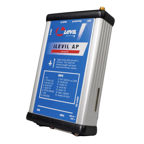 The iLevil AP Autopilot is an all-in-one avionics solution, integrating several sensor modules to provide ADS-B weather and traffic information, GPS navigation, AHRS, and Data Recording. The Autopilot feature uses the AHRS data to determine aircraft attitude and controls small trim tabs to maintain wings level or maneuver the aircraft smoothly to desired heading and altitude. The iLevil AP can be used as a portable or permanent-mount instrument. It integrates static and dynamic pressure transducers, which make available accurate indicated airspeed and pressure altitude obtained from the pitot-static system, ultimately offering a "six-pack" solution displayed on a tablet. Version includes flight module only. |
