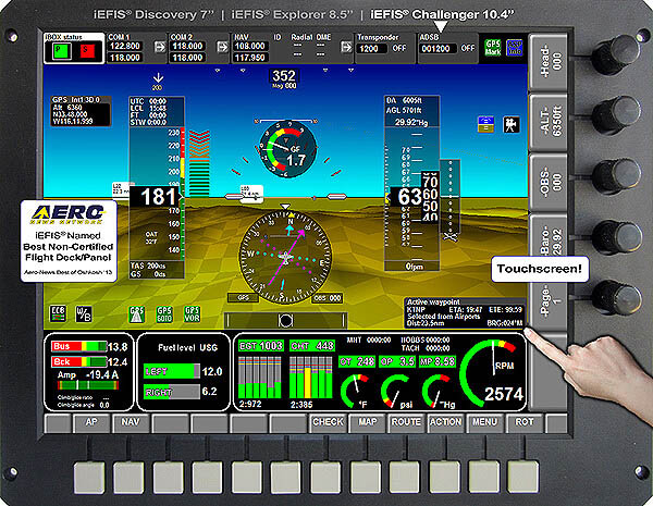 Features a bright non-reflective 10.4" touchscreen of around 2000+ nits.It looks, feels and operates just like a regular iEFIS, however it does not require the additional iBox and AHRS since pitot/static, GPS receiver, and attitude sensor are all built into the back of the screen. The iEFIS-Lite concept of the all-in-one EFIS is unmatched in the market. It has the same powerful G3 processor and runs the same firmware as the regular iEFIS system and has all of the same software features - just less external hardware complexity.The iEFIS-Lite has the fewest modules to install and the easiest installation in the homebuilt market. Like all our G3 iEFIS systems it comes with a World wide high resolution terrain database built in plus a World wide vector map. It is compatible with MGL's new "MapMaker 2" raster map format. Notably, the G3 iEFIS systems boots to operational state in 0.5 seconds (zero point five) from application of power. GPS is online 0.5 seconds later (provided you have not moved more than 500 Km from last known fix and a fix is possible). Synthetic vision, terrain data, maps etc are all up and live in a blink of an eye. |