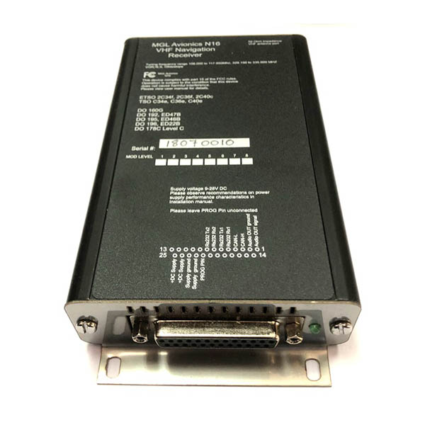 The N16 navigation receiver is identical in size to the V16 COM radio and can be used in a simple configuration as combined NAV/COM solution for both MGL EFIS systems using the MGL protocols or, if at least one Vega or Razor control head is used these heads can provide NAV/COM data output on RS-232 that is compatible with most EFIS systems on the market.