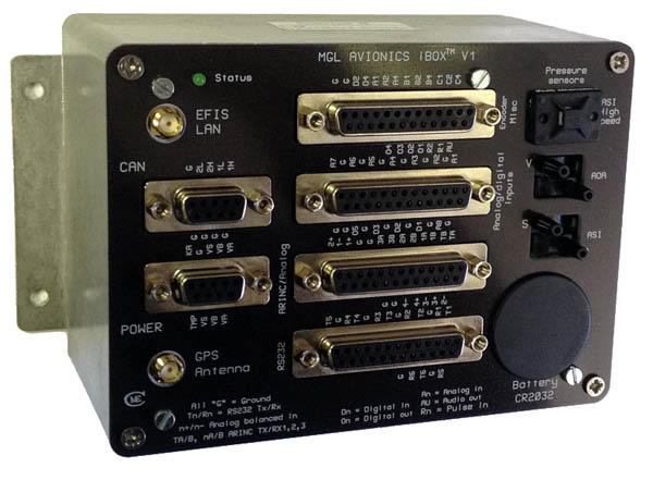 The iBox is the heart of the iEFIS system, and the conductor in the symphony of communication between all system devices and the iEFIS screens. The iBox contains the GPS engine (with antenna connection), the pitot/static sensors and Angle of Attack sensors. The iBox is the hub of communication for all the system devices (AHRS, RDAC, Autopilot Servos) and is also the hub of communication with all third party devices (radios, transponders, ADS-B, VP-X) via its RS-232 and ARINC interfaces. One iBox is necessary in every iEFIS system, and in cases where maximum redundancy is required, a 2nd iBox can be added to the system. The 2nd iBox acts as a ‘hot standby’ and is ready to take over all iBox tasks automatically when necessary, or on command by the pilot. |
