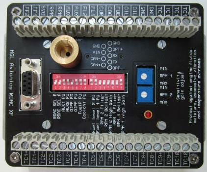 The RDAC XF is the Engine monitor module used with Ultra, Enigma, Odyssey, Voyager and all iEFIS instruments. Available in two versions, the RDAC XF is the base version and the RDAC XF MAP adds a precise silicon manifold pressure sender (usuable for any pressure in the 0 to 2.5 Bar (30psi) range (non aggressive gases or liquids only). The RDAC XF provides an optically isolated communications interface compatible with all existing MGL EFIS systems. In addition it provides a CAN bus interface used with iEFIS systems. Further to this a RS232 interface is provided allowing thrid party (OEM) use of the RDAC system. The RDAC XF provides up to 12 channels for thermocouple sensors (EGT,CHT), channels dedicated to NTC temperature and other probe types, oil and fuel pressure, fuel levels, dual fuel flow and dual RPM, manifold or boost pressure (RDAC XF MAP only) The RDAC XF replaces the long running RDAC XB, XD and XE versions with a more flexible, yet sturdy design in a strong, cast aluminium bulkhead mount device. |