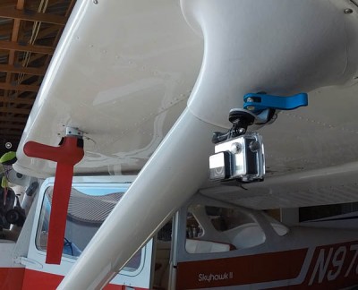 This thing is fun. I tightened it very well on the tail tie down, the GoPro tightens well enough with fingers to the mount. It is on my Arrow II, my Arrow will be 50 later this year so disciplining it is not possible. It likes to marks it territory and for the most part it has only marked the camera once in my extensive 4 hours of use and that was on the takeoff roll. The oil spot blew away to gone in the picture once we got up to 150 mph. I have a GoPro 8 Black. Video quality is incredible, wind noise is equally impressive, cant hear the prop or engine at all in flight. It is very fun to see the gear retract and control surface movement. The GoPro has auto stabilization that keeps the horizon steady as the plane rolls about in summer thermals. Picture quality is very good. We have over flown the islands in Lake Erie and their many airports, runway markings very clear, number are legible, even able to make out the type of aircraft parked with reasonable confidence from 3000ft AGL. Very happy with this new toy and it cost us no speed penalty that we can see. We live in Ohio, the wind is always blowing, how would I know. Even trying to over rotate and drag the camera my plane will not do it. If I have the speed to lift the nose high enough to drag the tail the Hershey bar wing lifts us into the air first. At least in a straight wing PA-28 I cant get the tail close to the ground. No way on a takeoff will if drag. I am crazy not stupid, I have not attempted to land tail first. My new battery only last 48-51 mins and on 2 flights we had 15 and 25 min waits to takeoff. I have heard a rumor that there is a way to turn the camera on and off remotely, unless checking on brake function or nose wheel shimmy a long taxi is just wasting battery, look into the remote or jump out and turn it on right after run up. This will make even dull flights over corn, wheat and beans interesting