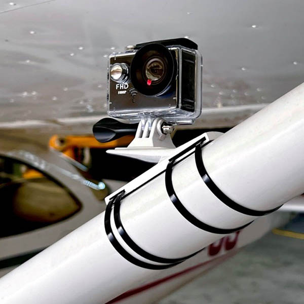 **NOT FAA APPROVED - FOR USE IN EXPERIMENTAL AIRCRAFT ONLY**Radiant produces Action Camera Mounts for Cessna, Tri-Pacer, and Piper Cub aircraft. They provide an exacting fit to aircraft lift struts, allowing a stronger and stiffer camera mount. The mounts conform to the lift strut and are attached with special heat stabilized black nylon tie wraps. The mounts as pictured are on a Cessna. The other mounts are very similar. These mounts come unpainted (black color) and may be painted with any plastic compatible paint Note: Camera not included. |