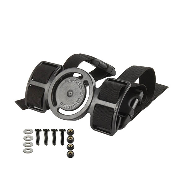 RAMŽ Body Mount for Legs. Two straps for tight support. Allows for easily turning your device to view in either portrait or landscape mode, and provides support in a low profile. Additional accessories needed for mounting to any device. |