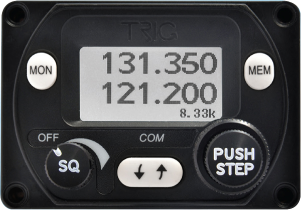 The Trig TY91 takes up minimal space and weight. With a crisp clear display and simple user interface the Trig radio benefits from some great features; the ‘Dual Watch’ feature allows the monitoring of two frequencies at the same. There are 9 pre-set channel memories which are all easily selectable. The radio can integrate with popular GPS units; this allows the automatic display of en-route radio frequencies (uses industry standard SL40 protocol). The radio also has a built-in two place intercom with an aux-input, saving further cost and weight. The innovative use of a control head and separate radio hardware unit provides more installation options, especially when space is at a premium. The control head can be conveniently mounted in a full 57mm (2 ¼”) round hole or even smaller compact mount. Fitting is straightforward, and once installed the depth of the radio control head is only 74mm (3”). In practice this means that the Trig TY91 and TY92 control head can be located in an aircraft instrument panel where a ‘single box’ radio will simply not fit. The TY91 is the perfect comms partner to our TT21 and TT22 Mode S (1090 ES ADS-B Out transponders). The TY91 is EASA ETSO and FAA TSO approved so it can be used worldwide. For customers who do not require 8.33 channel spacing this feature can be disabled, allowing speedy selection between 50 kHz and 25 kHz spacing. This enables rapid change of frequency whilst providing fine tuning in 25 kHz steps if required. The TY91 Trig radio two place intercom is optimised for use with standard aviation headsets – a number of adjustments allow the radio to be used successfully in noisy aircraft. The TY91 also has a built in speaker amplifier that can drive an external speaker, this is preferred by some glider pilots. If using a dynamic microphone with a Trig radio please note an amplified adaptor will be required. All Trig products come with a two year warranty, supported by our global network of Approved Trig Dealers and Approved Trig Service Centers in the U.S. and Australia. |