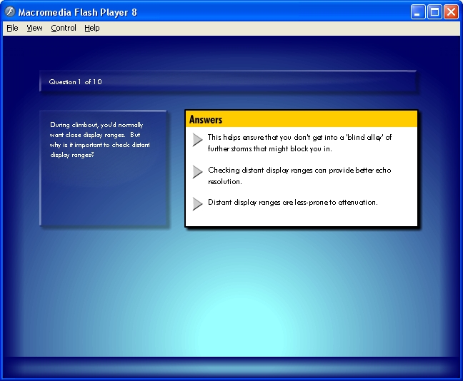 Airborne-Radar.Com is an online course that teaches how to use airborne weather radar. But, it goes beyond the use of airborne radar, teaching thunderstorm theory, hazards of thunderstorms, airborne radar theory, and airborne radar techniques. A Final Exam concludes the course, enabling the user to test their knowledge. Airborne-Radar.Com is available to PC and Mac users.