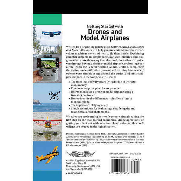 Learn to buy and register your drone or model airplane, become certified as a drone pilot, use a two-stick controller, and follow the rules to fly safely in any environment. Written for a beginning remote pilot, Getting Started with Drones and Model Airplanes will help you understand how these marvelous machines work and how to fly them safely. Explaining complex subjects in simple language with pictures and diagrams that make them easy to understand, the author will guide you through buying a drone or model airplane, registering your aircraft with the Federal Aviation Administration, completing the testing and certification process, and learning how to safely operate your aircraft in and around the busiest and most complex airspace in the world. You will learn: