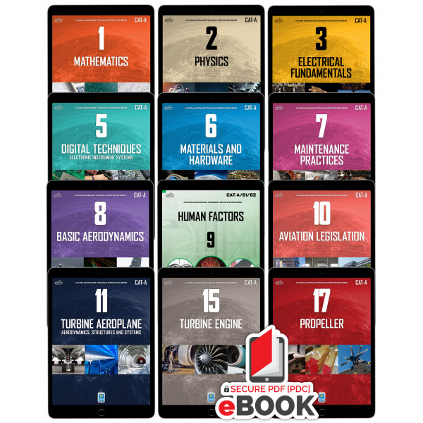 This is the complete set of 12 modules required for the EASA Part 66 Cat-A1 aeroplane/turbine certification which is often favored for line mechanics and/or as a starting place for your career prior to obtaining a full B1 rating. This set includes: