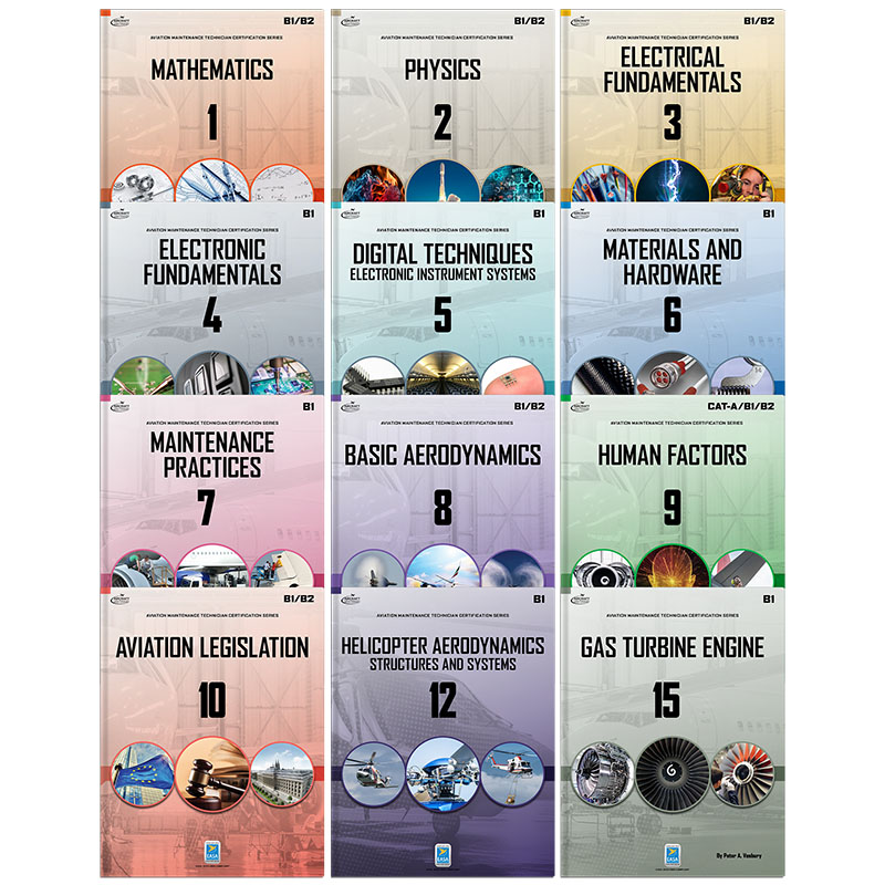 This is the complete set of 12 modules required for the EASA Part 66 B1.3 helicopter/turbine certification. Each module is written strictly in accordance with EASA Part 66 requirements and fully updated to EASA 2023-989. Each topic is explained with understandable text and exceptional full color illustrations in a step by step detail. You will learn by understanding concepts, not just rote memorization and you will learn how and why each skill is useful in the day to day tasks of the aircraft technician in the aviation maintenance environment. Set includes: