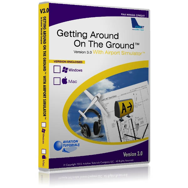 Don't become a victim of runway incursions! Are you familiar with the problem of "runway incursions?" Have you ever had a runway incursion? A runway incursion is "Any occurrence at an airport involving an aircraft, vehicle, person, or object on the ground that creates a collision hazard or results in a loss of separation with an aircraft taking off, intending to takeoff, landing, or intending to land." Registration Process After the checkout process is complete, expect to receive an email within 8 hours of purchase with your download link for immediate download. All pilots can agree on one fact: It’s easy to become disoriented, overloaded, or misunderstand communications when operating on the ground. Yet ground operations are one of the most critical phases of any flight. The fact is, runway and airport safety is getting worse. As of December 1, 2011, the number of runway incursions and other ground incidents is rising. What can you do to help ensure that you won't cause a runway incursion in the future? What can you do to help prevent being a victim of a runway incursion? Getting Around On The Ground™ 3.0 With Airport Simulator™ is the only interactive, multimedia tool available that teaches the types of airport markings, signage, and lighting. It also goes beyond simple technical knowledge by outlining hazards, safety tips, and procedures that will help keep you aware, knowledgeable, and safe on the ground. Now with airport simulator Learning the theory is one thing. Practicing it is another. That's where Airport Simulator comes in. Airport Simulator is a real-time, 3-D, virtual airport taxi simulator. Get the ATIS, exchange communications with Air Traffic Control, and follow taxi instructions including hold short and runway crossing tasks. The goal is to practice taxiing so as to NOT cause a runway incursion. Two airports and forty challenging taxi scenarios are included. And, there's no need for special hardware such as rudder pedals, because you control your aircraft with just a few keys on your keyboard. It's easy! Qualify for FAA WINGS credit! By completing all the content and taking the Final Exam, you can qualify to obtain credit for the FAA WINGS program. The WINGS program is a continuing education program for pilots, sponsored by the FAA. You'll not only learn to be a safer pilot on the airport surface—you'll also be able to prove your commitment to flight safety with your WINGS account. (Aviation Tutorials is a WINGS Training Provider.) Why you'll love it FAA WINGS credit Windows or Mac Unique training approach Stunning graphics and interactivity, shown from the pilot's perspective