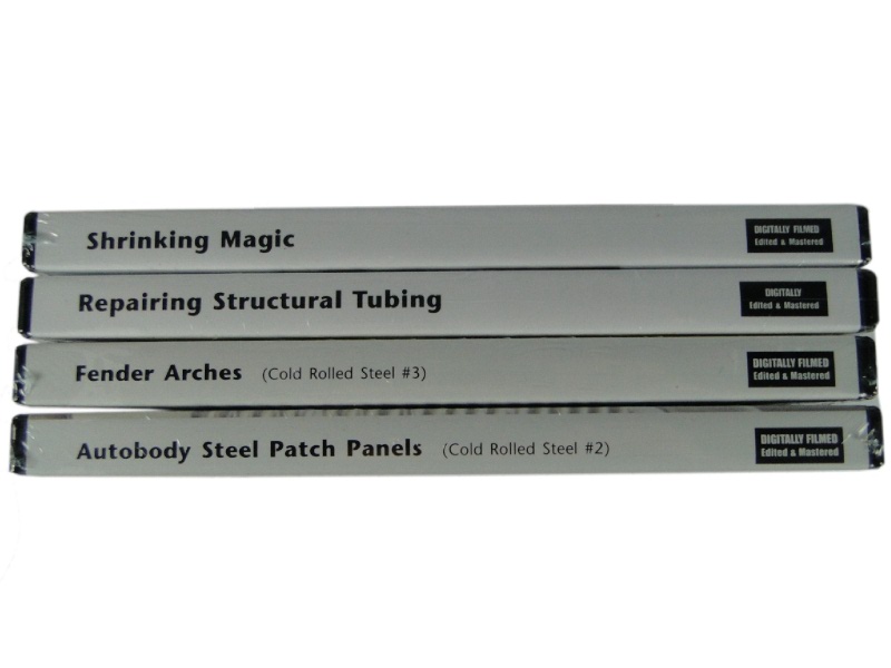 These 4 DVDs cover hand tools, measuring, cutting, forming, form blocks, patterns, shrinking, stretching, Pullmax, Air Hammer, gas welding, and spot welding. |