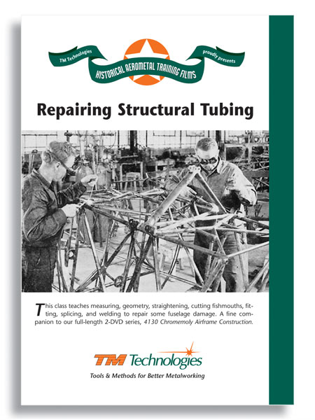 This class teaches measuring, geometry, straightening, cutting fishmouths, fitting, splicing, and welding to repair some fuselage damage. A fine companion to our full-length 2-DVD series, 4130 Chromemoly Airframe Construction. |