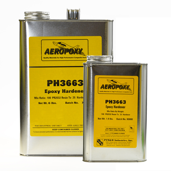 Hardener PH3663 is the standard production hardener for fabricating composite parts. PH3663 has a 90 minute working time which provides more time for construction. This hardener provides similar mixed viscosities, so handling will be basically the same, except for the different working times. This product can be considered low toxicity material that has minimum hazard potential when used properly and in a clean and responsible manner. Hardener PH3663 does not contain methylene dianiline (MDA), or other potentially harmful aniline derivatives. Neither the resin nor the hardeners will crystallize in normal shipping and storage conditions, including refrigerated storage. All components have excellent moisture resistance, for minimal problems in high humidity environments. |