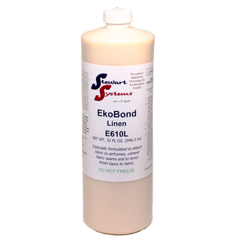 Stewart Systems EkoBond is setting the standard for aircraft fabric adhesive in the 21st century. Ekobond is a water-based, contact adhesive that is very flexible and heat workable with an incredible shear strength. EkoBond is very easy and pleasant to work with.