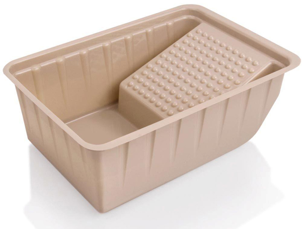 Small tray fits the 4-inch roller. Bucket has a built-in roller board for quantity application.