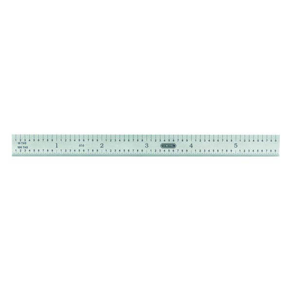 General's industrial quality Steel Rules are precision made with etched fine black graduations for easy reading and long life. The two finishes available are polished stainless steel or satin chrome. Front graduated in 10ths, and 100ths, back in 32nds and 64ths. Quality 12 inch (30cm) flexible stainless steel rule. Precision made. Fine black etched graduations. #1216 Steel Rule #616 Steel Rule |
